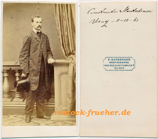 54 Bezeichnet als von Könneritz. Foto: Hanfstaengl, DresdenBezeichnet als von Könneritz. Foto: Hahn, Dresden56 Bezeichnet als von Metzsch. Foto: Hahn, Dresden57 Bezeichnet als Frau von Metzsch. Foto: Hanfstaengl, Dresden58 Bezeichnet als von Weber.59 Fräulein Fanny Stieglitz. Foto: Roemler, Dresden60 Herr von Vieth. Foto: Hahn, Dresden61 Abgebildet ist ein Geistlicher. Der Name des Präses ist unleserlich. Foto: Striegler, Kopenhagen62 Herr von Tochinsky. Foto: Büchfeldt, Dresden63 Monsieur Edouard Cheri Foto: Gorgerat, LausanneMadame Sophie Edouard Vautier Foto: Gorgerat, LausanneMonsieur Chevin66 Constantin Sloutchevski, datiert: 1861 Foto: Randegger, Vevey67 Madame Antropoff Foto: Levitsky, Paris68 Mister Mitchell Foto: Hanfstaengl, Dresden
